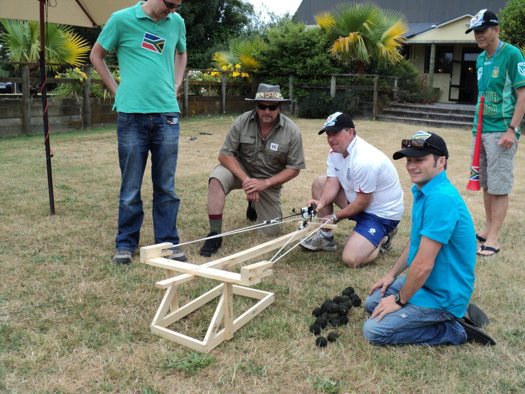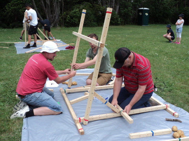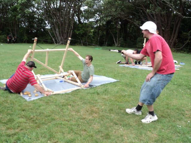 Snapshot: Teams trade and barter for materials, design and construct catapults and then fire them against other teams to win this fun team building activity. Outside version available.